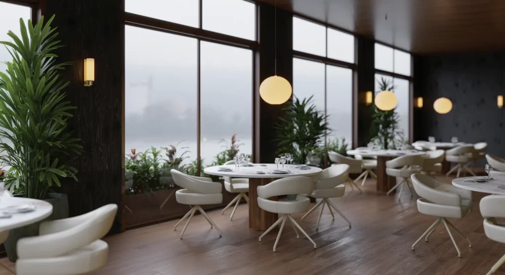 Tendo seu assento estofado revestido em tecido ou couro ecológico (PU) e base giratória, ela foi pensada para espaços que pedem movimento e praticidade sem abrir mão do visual. O encosto envolvente abraça o corpo e garante conforto, seja em um restaurante ou em uma sala de jantar em casa.