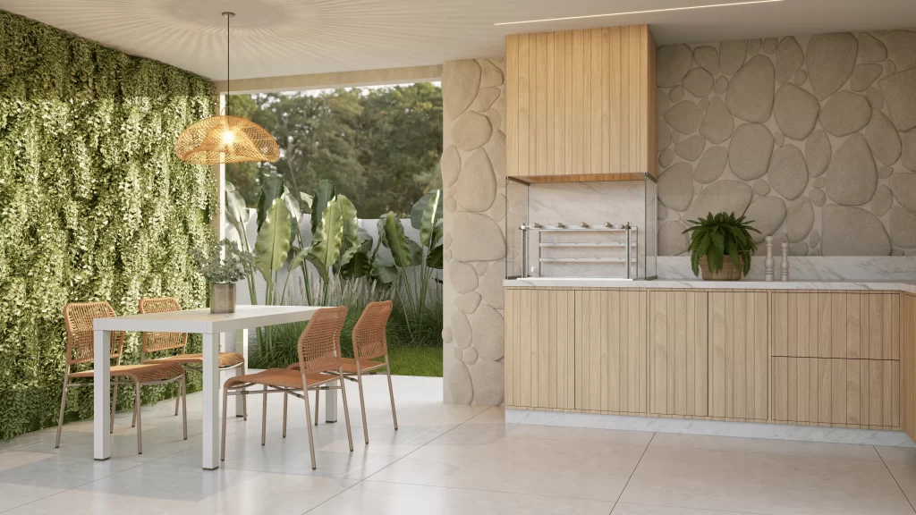 Com um visual moderno e disponível em cores neutras, a Mesa Creta se adapta facilmente a diferentes estilos de decoração, do clássico ao contemporâneo. Sua versatilidade permite compor cozinhas, varandas, áreas gourmet e jardins.