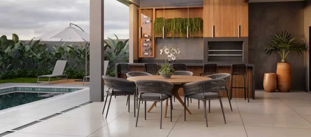 As áreas externas se tornaram extensões dos ambientes internos. Varandas, jardins, sacadas e espaços gourmet pedem móveis que unam estética, conforto e, principalmente, resistência.