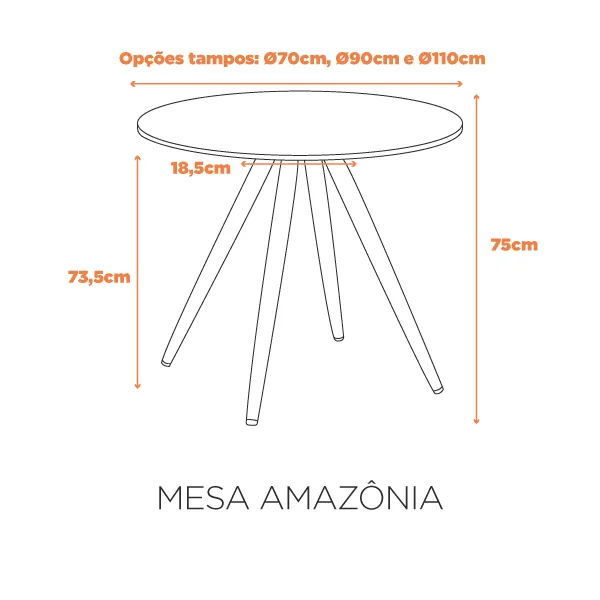 Dimensões: Diâmetro: 70cm, 90cm ou 110cm | Altura: 72 cm