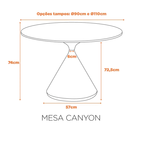 Dimensões: Diâmetro: 90cm e 110cm| Altura: 74cm
