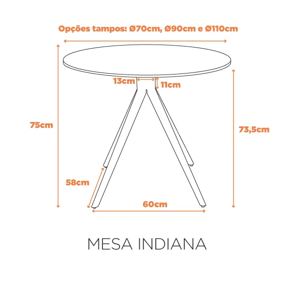 Dimensões: Diâmetro: 70cm, 90cm ou 110cm | Altura: 75 cm