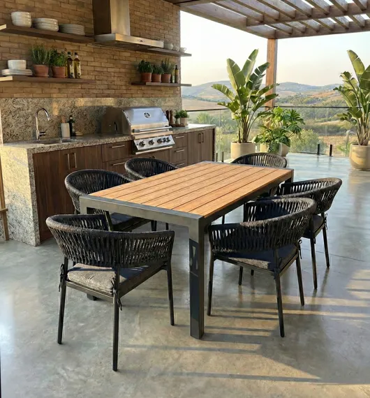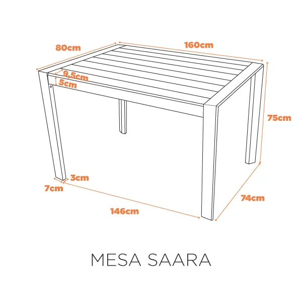 Descrição: A Mesa Saara é perfeita para ambientes internos e externos! Com esturtura em alumínio e tampo em polywood, ela é de fácil manutenção e resistente a água e mudanças de temperatura, o que a torna ideal para diversos ambientes, disponível em 02 cores neutras ela combina com diversos tipos de decoração.