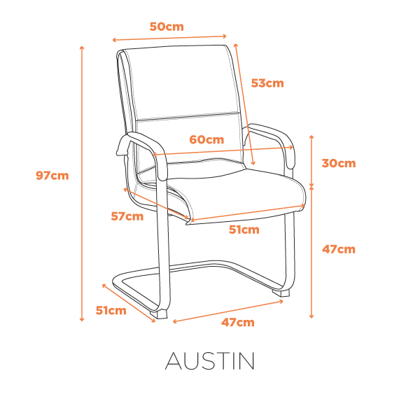 Descrição: A cadeira Austin é ideal como cadeira de apoio em salas de diretoria, consultórios ou escritórios. Disponível em 04 cores neutras para combinar com sua decoração, sua base em aço cromado confere durabilidade e resistência, enquanto o seu assento e encosto estofado em couro ecológico, leva elegância para sua decoração. Uma escolha sofisticada para complementar seu ambiente de trabalho.