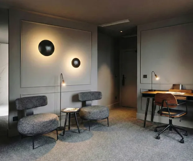 Material:Estofado revestido em tecido ou couro ecológico (PU) e base em aço carbono.