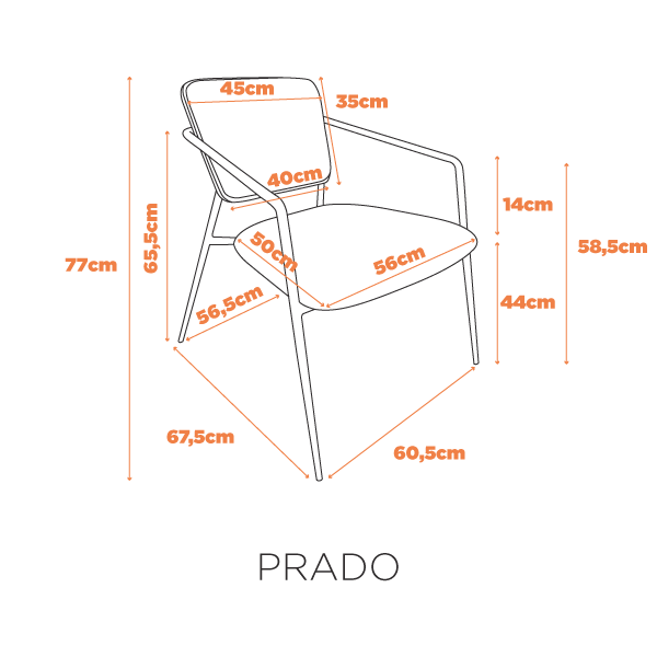 Dimensões: C 67,5 x L 60,5 x A 77 cm | Altura Assento: 44cm